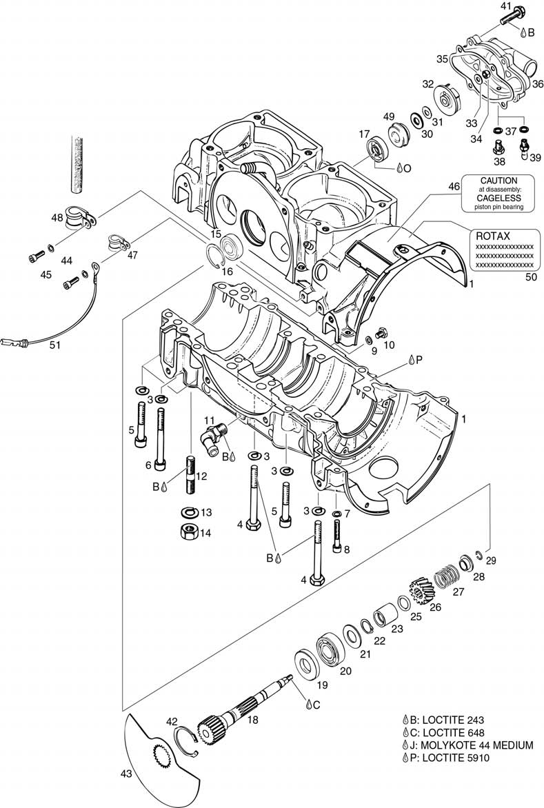 CRANKCASE, ROTARY VALVE DRIVE, WATER PUMP For ROTAX 582UL